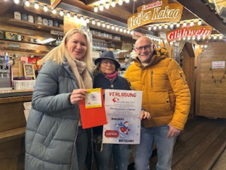 Die Glücksfee Greta Müller hat am 18.12.2025 das Gewinnlos für die Reise nach Berlin gezogen. Die Gewinnnummer lautet: 448